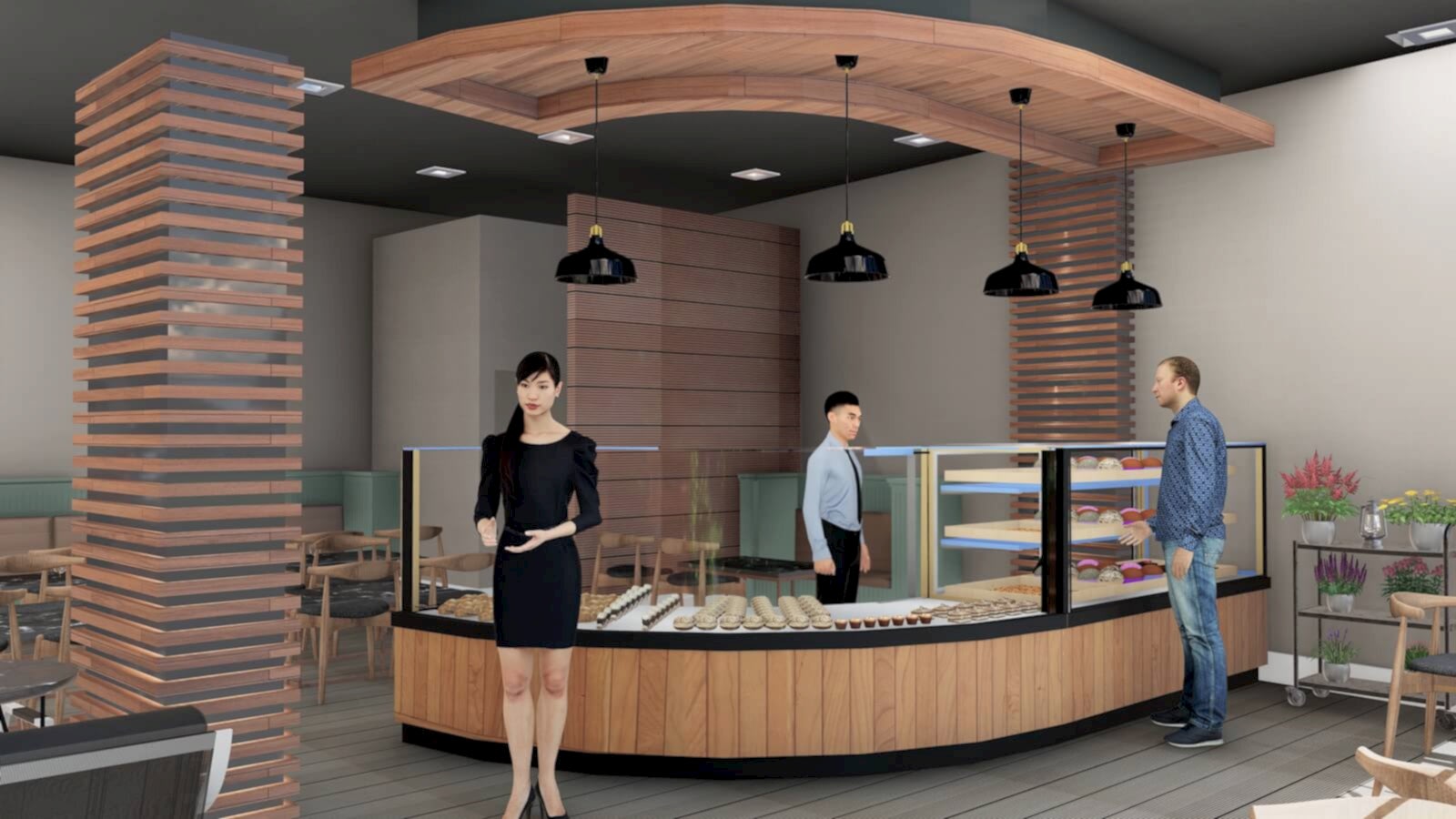 İmalathane ve yeme- içme alanından oluşan modern çizgilerle yorumlanan simit kafe tasarım projesi